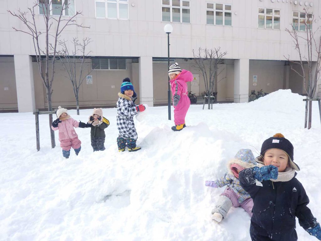 小さなお友だちも大きなお友だちも寒さに負けず元気いっぱい雪あそびを楽しんでいます。