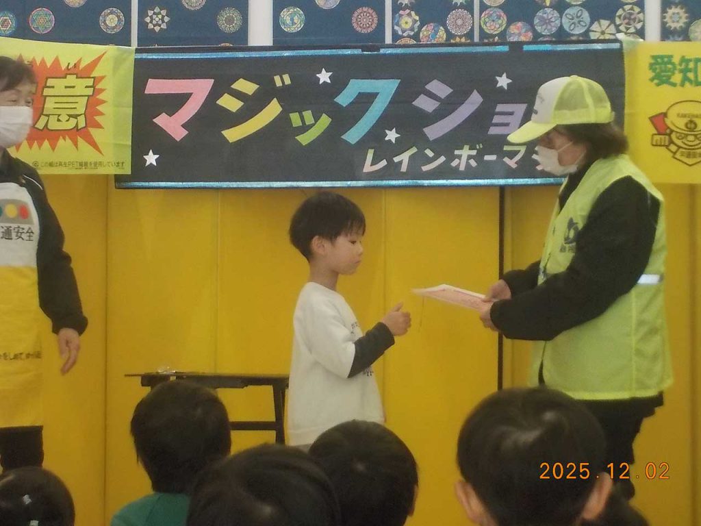 交通安全ボランティアの「虹の架け橋」の皆さんによるマジックショーがありました。