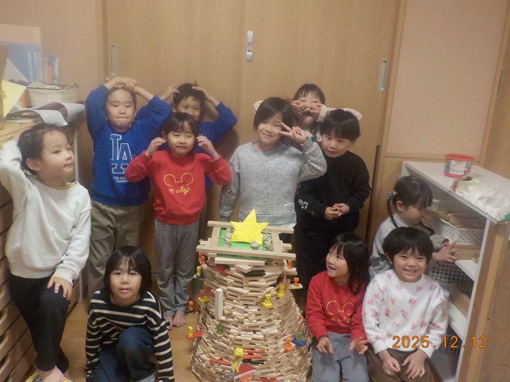 年長組では積み木を使ってクリスマスツリーをつっくていました。素敵なツリーができて満足そうです。