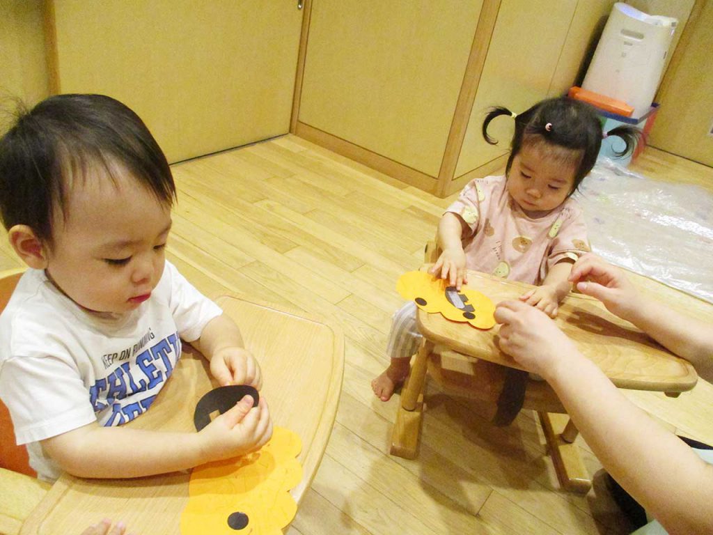 0歳さんシールペタペタじょうずでしょ!?