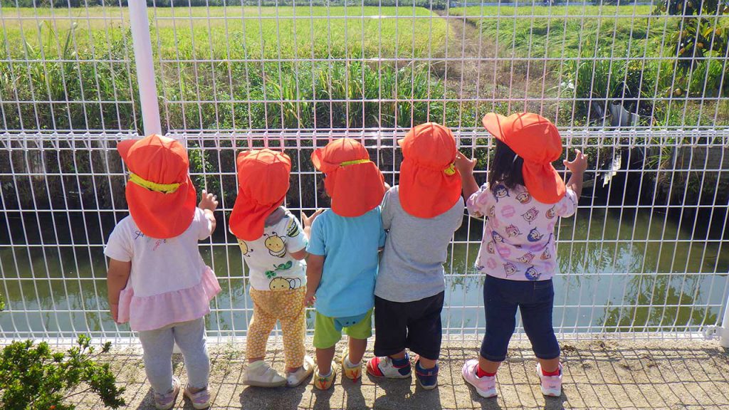 吹く風が心地良く過ごしやすい季節となりました。子ども達は、戸外遊びをしたり、園外散歩に行ったりして元気いっぱいに遊んでいます。園外散歩では、線路沿いを歩いている時に遮断機の音が聞こえると「かんかんかん」「でんしゃー」と言って立ち止まり、電車が左右どちらから来るか目を輝かせながら見つめている子ども達!また、トンボや草花などの動植物を見たり触ったりし自然を感じながら散歩をしています。秋は、どんぐりや木の実、落ち葉などの自然物がいっぱい!秋の深まりを五感で感じられるよう園外散歩をたくさん取り入れていきたいと思っています。