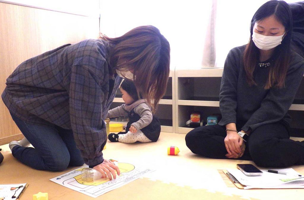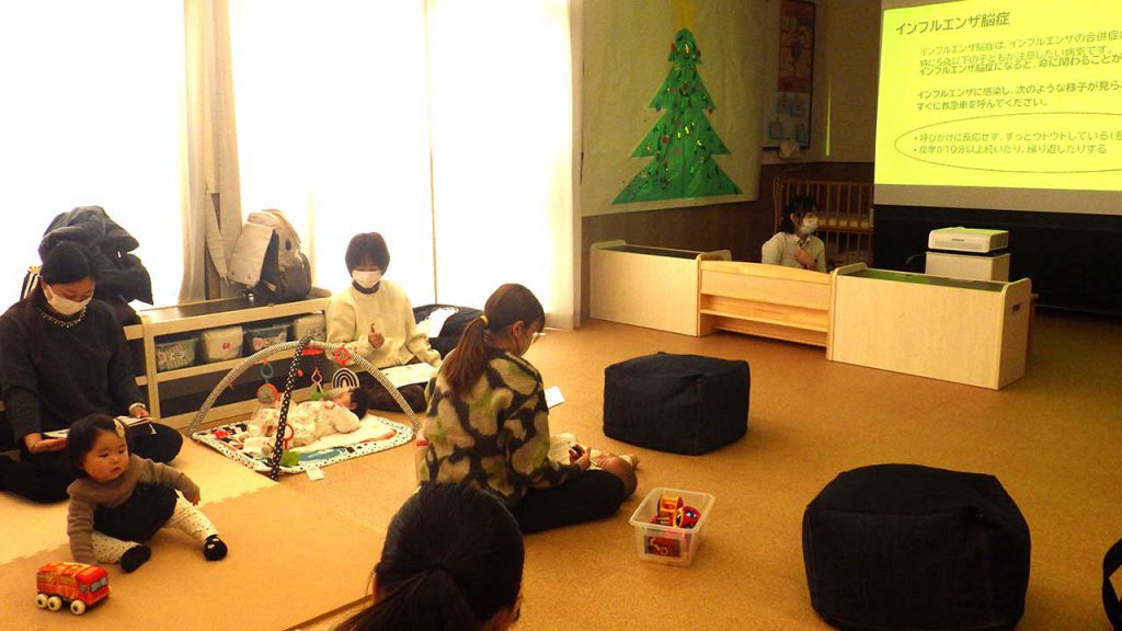 明けましておめでとうございます。皆様どのように年末年始過ごされたでしょうか。支援センターでは年明けからも皆様に気持ちよくご利用していただけるように、普段以上に心を込め丁寧に掃除をして年を越しました。そして、朝の冷えた空気に身が引き締まる思いで、また清々しい気持ちで新年を迎えました。今年も皆様のご来所、心よりお待ちにしています。さて、1月は毎月のイベントに加えて「新年お祝い会」や「伝承遊びをしよう」といった季節のイベントも計画しています。新年お祝い会では参加者の皆さんと一緒に一年の健康を祈願して過ごせる内容を考えて準備中ですので、季節のイベントも通常開催のイベントも皆さんの参加お待ちしています。楽しめるイベントはもちろんですが、12月には大切なお子様や身近な人を守るために知っておいたら役に立つ『学びのイベント』も行いました。「冬に気を付けたいケガや病気のお話」と題して保育園看護師による講話とペットボトルを用いた心肺蘇生実践が行われ、イベント終了の際には「看護師さん在籍は心強いですね」「このようなイベントの開催と、参加の声掛けをしてくれて本当に良かったです」といった声を掛けていただきました。イベント中には熱心にメモを取られる姿もみられ、学びの大切さを参加者様の姿から再確認させてもらいました。そのような真剣な表情、そしてとびっきり楽しまれている笑顔の写真をご紹介します。