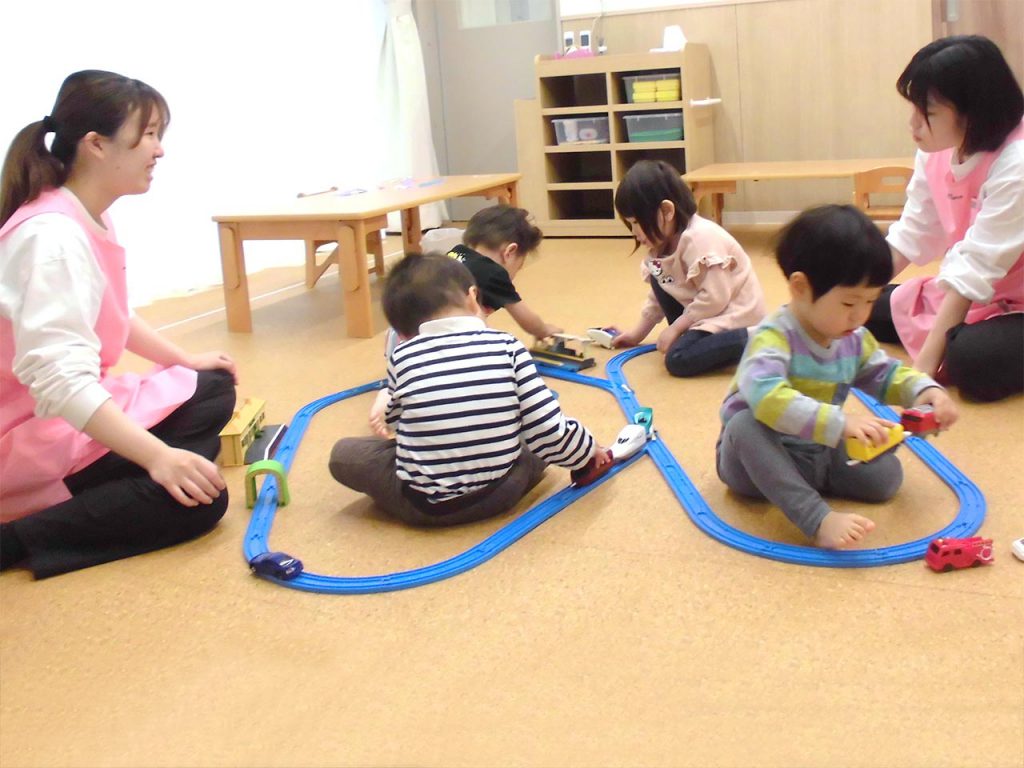 昨年度2月より新園舎になり新しい環境づくりから改めてスタートしました。コーナー遊びを充実させ自分で好きな玩具を選んで、じっくり遊ぶことができるようにしています。特にブロックや、ままごと遊びが大好きで、友だちともかかわりながら楽しく遊んでいます。低月齢児と2歳児以上児の部屋を分け安全に遊べるように工夫も心掛けています。縦割り保育の時にはクラスを仕切っている扉を開け異年齢との、ふれあいを積極的に行っています。お子様一人ひとりの気持ちに寄り添い個性を大切にしながら日々の保育を元気に楽しみながら過ごせています。