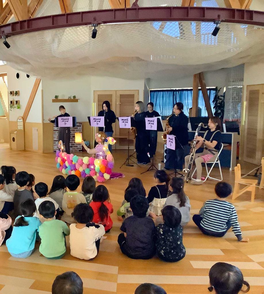先日園内にて行われた音楽鑑賞会では野田市のママさんブラスが、子ども達が聞き馴染みのあるアニメソングやアンパンマン、ディズニーの曲を生演奏で聴かせてくれました。子ども達は生演奏に合わせて歌ったり、手拍子をしたり、クイズに答えたり、全員でダンスを踊ったりなど、大盛り上がりの時間となりました♪