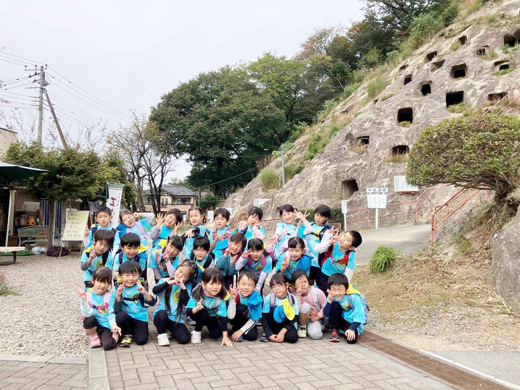 5歳児は吉見の百穴の上まで登り、東松山市の市街地を一望し、とても感動していました。