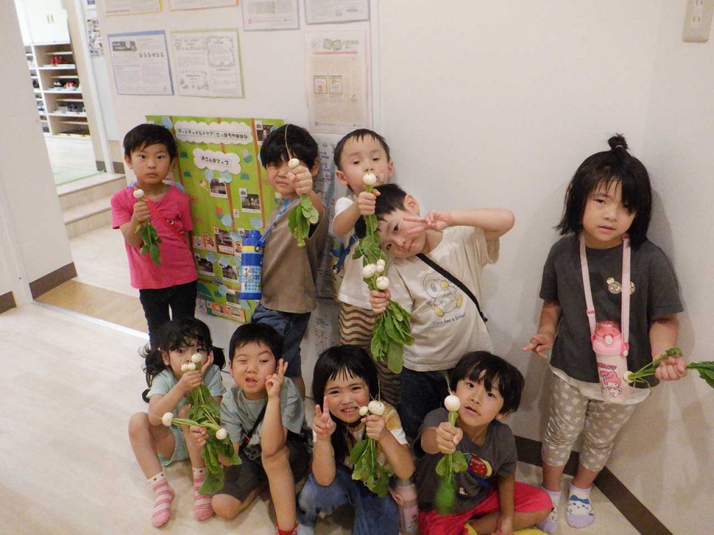 5月から育てていた野菜を収穫しました。かわいいカブです。