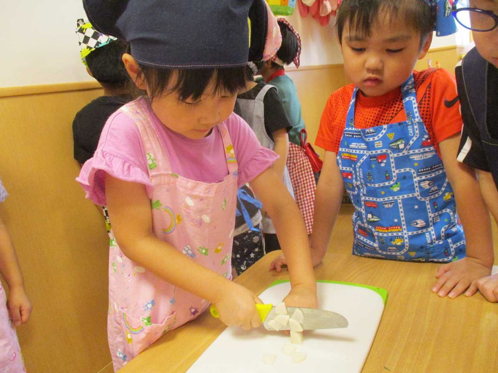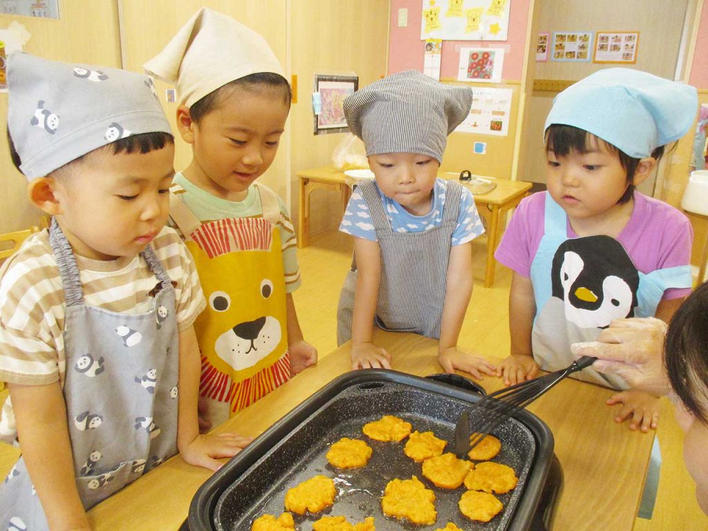 少しづつ秋の気配が感じられるようになってきましたね。子どもたちは夏の遊びを存分に楽しんだあと、運動会や遠足に向けた活動をしています。「できた!」という喜びや、最後までやり遂げる達成感を味わいながら取り組んでいます。幼児クラスではにんじんもちクッキングをしました。自分たちで育てたにんじんを収穫してどのようにクッキングするのか夢中になって見ていましたよ。「まだかな~」とワクワクで待ちきれない様子でした。また、他のクラスではかぶの収穫をしました。子どもたちは「かぶいっぱい取ったよ」「顔くらい大きいの取れた」ととても嬉しそうにしていましたよ。