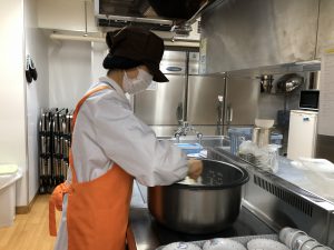 子ども達の言葉を励みに、力いっぱい給食を作っています。 完食したお皿が戻ってくると本当に嬉しく、子ども達の「おいしかった!もっと食べたい!」その言葉で胸がいっぱいになります。 残食が多い時は、次は変化をつけて子ども達に少しでも食べてももらえるよう皆で相談し、対策を考えています。 子ども達の成長にも携わることができる素晴らしい仕事です。ぜひ一緒においしい給食作りをしませんか。 |